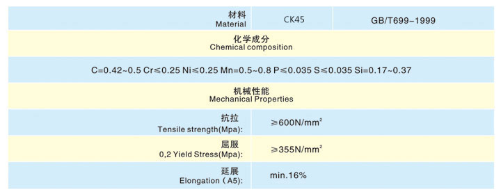 | 中國標(biāo)準(zhǔn):GB | 45#鋼 |